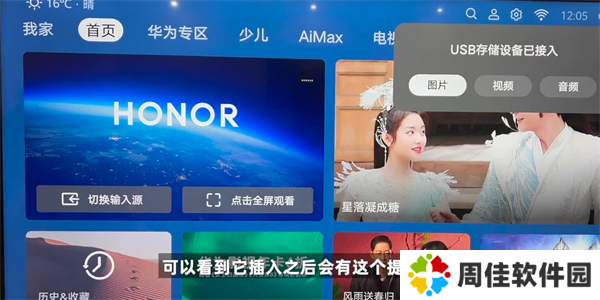 1、下载完之后把它放到U盘里面就可以进行电视上的安装了。现在把u盘插到电视上来进行软件的安装,可以看到插入之后会有提示。