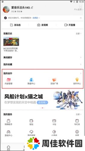 3、进到用户中心以后,挑选在其中的“我的创作”,如下图所示。