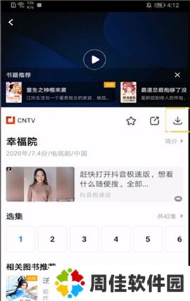 2、打开一个你喜欢的视频,点击下载图标。