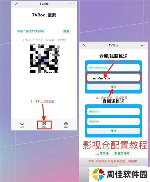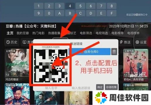 点击影视仓主页的配置选项,用手机扫描电视屏幕上的二维码,点击手机界面下方的配置按钮,即可出现仓库推送界面 (点播源),将仓库地址输入后点击推送。在电视上自用仓库流界面点击确定,即可打开仓库地址选择点播源。