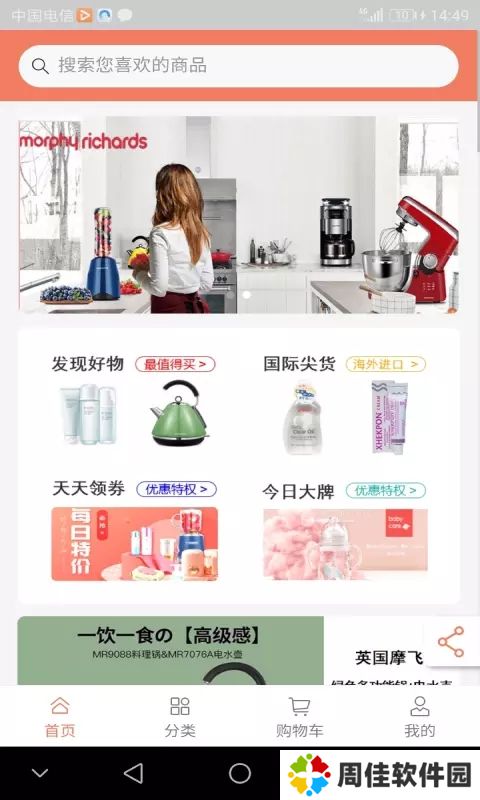 2、各种优质品牌好货随时预览选购,以及日常好货为您推荐,用户还可以自由搜索自己喜欢的商品。