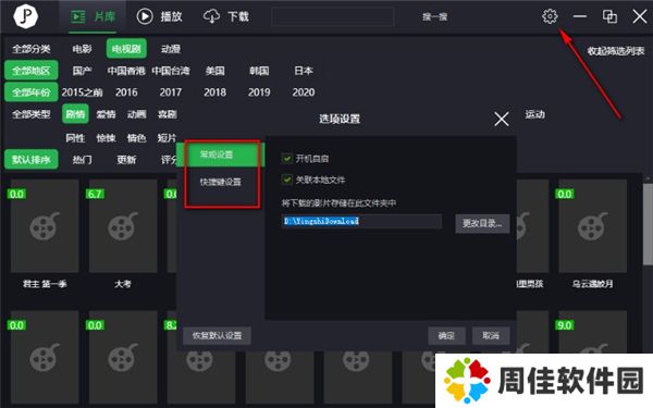 5.同时你可以点击右上角的设置图标,点击一下,可以在该窗口下查看和更改下载的路径,以及设置快捷键。