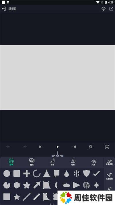 5、可以添加形状、文本、媒体(手机上的图片和音乐还有视频)、图纸、元素;
