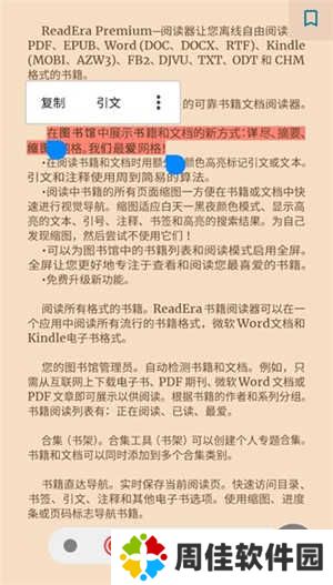 2、进入阅读界面后,可通过双指缩放搭配长按来选中指定的文字
