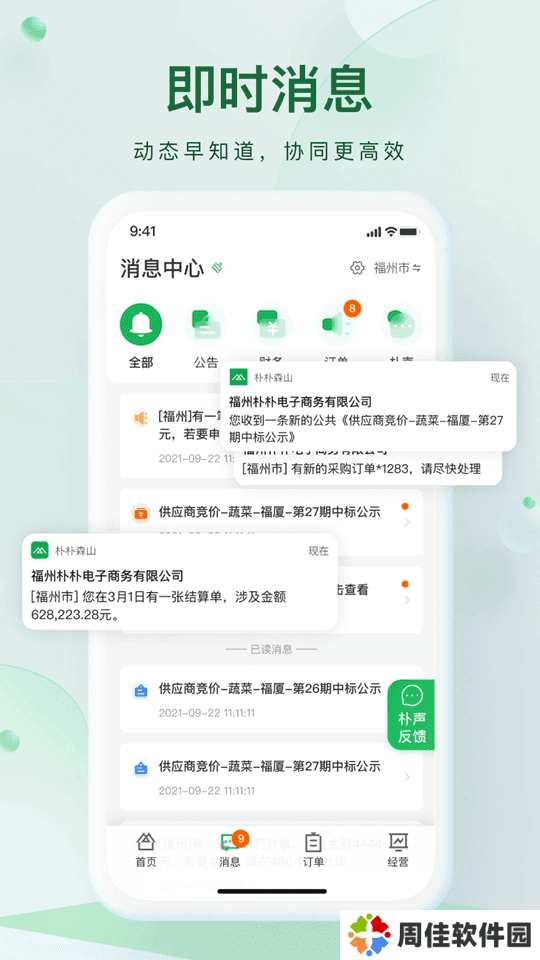 1、朴朴森山将提供推送通知和高效的协作用户管理。