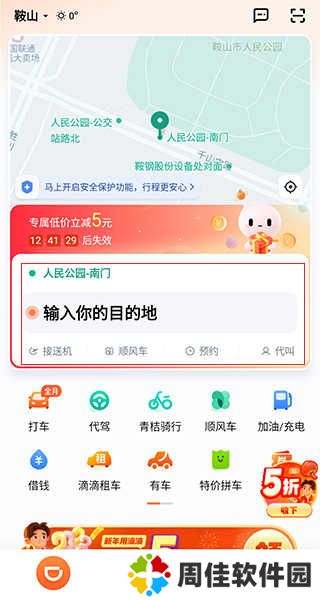 1、在本站下载并打开滴滴出行app,登录我们的账号后回到首页,使用定位或者手动选择我们当前位置以及目的地