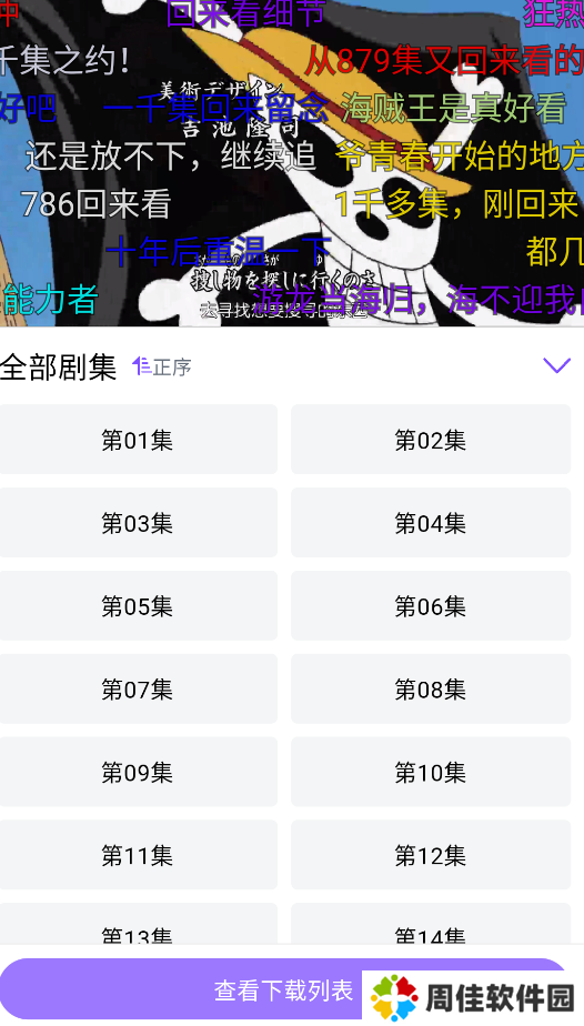 2、点击想下载的集数,例如第一集,就点击第01集,然后点击最下方中间的查看下载列表,等待动漫缓存完成