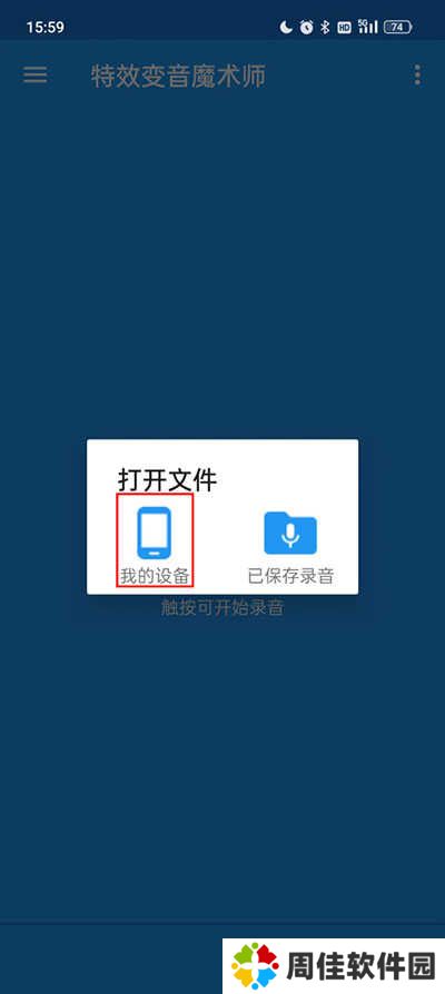 2、然后就会弹出两个选项,我的设备和已保存的录音,选择我的设备;