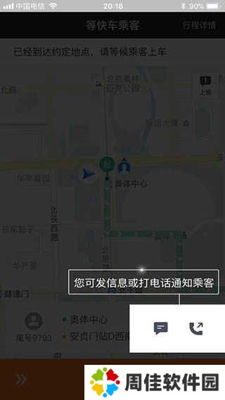 7、如果你发现乘客不在上车点,你可以点击短信或者电话,联系乘客,知道乘客是什么情况还没到达。