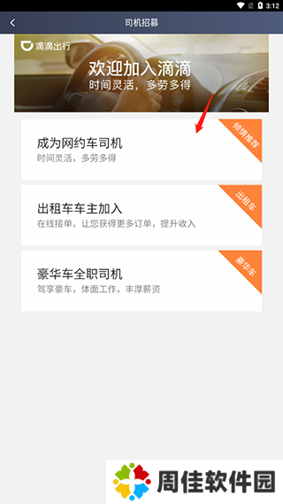 2、滴滴出行招募多种司机,点击想成为的加入;
