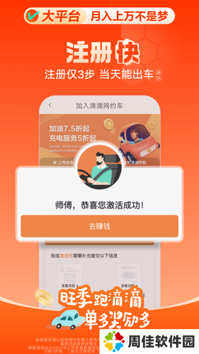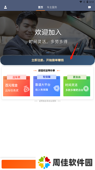 1、在本站下载打开滴滴出行司机端,点击立即注册,开始接单赚钱;