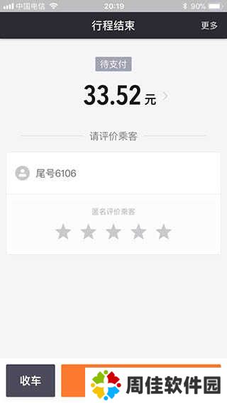 9、此时出行过程结束了,该你收钱了,系统会自动结束行程,并向你展示此次订单价格。
