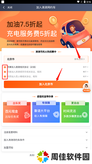 5、成为登录之后重复刚才的第一步和第二步,然后选择需要加入的城市,勾选相关协议,点击加入;