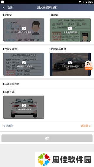 2、加入平台的快车需要提供车辆行驶证照片、带车牌照片的车辆、打开车门的照片。