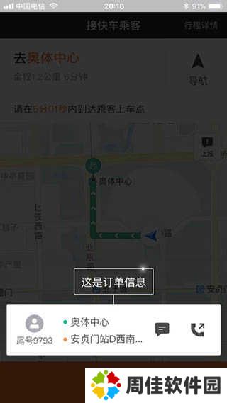3、系统会自动派单给你,系统自动帮你派单后,你会在页面下方得到信息,哪里上车,去哪儿,你就知道路线了。