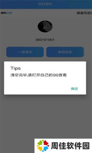 2、登录好自己的qq号后,点击软件一键清空即可清空资料