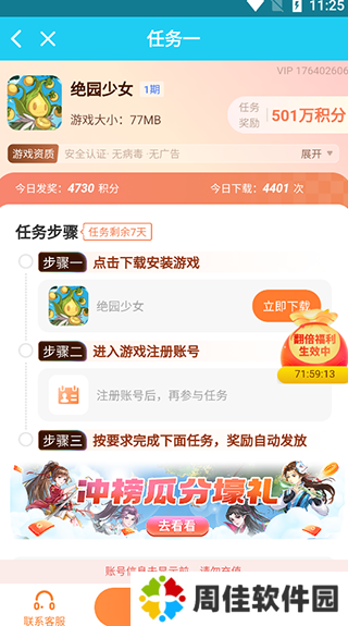 3、我们以任务一为例子,就可以在游玩里面的任务赚取积分;