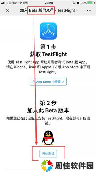 5、在测试界面可以看到,上面写着Beta版QQ就是测试版QQ,点击下方的“开始测试”,跳转到下一个界面。