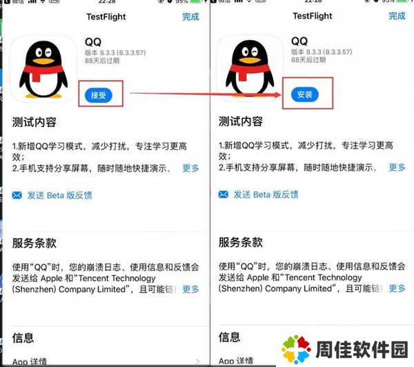 5、在这个界面点击“接受”,再点击“安装”,即可安装beta版QQ。
