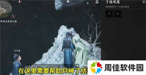 进入山洞后,你需要帮助月神完成她的夙愿,找到她的心爱之物。你需要寻找两件物品: