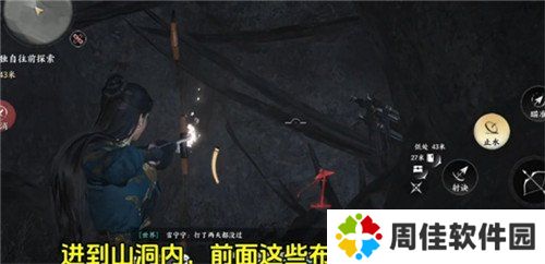进入山洞后,你会发现前方有一些布料悬挂。这些布料是机关触发物,当你接触到它们时,会触发危险机制。解决这个问题,你需要使用火箭来处理布条,确保安全通过。