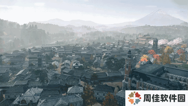 幕末时期的江户、横滨和京都融合了日本和西方元素,在开放世界中探索这些城市美丽的街景,感受樱花飞舞和红叶纷飞等季节变化。玩家可以使用“钩绳”爬上屋顶,或通过滑翔装置“阿鼻机流”从空中移动,还可以使用“拍照模式”捕捉喜欢的风景。