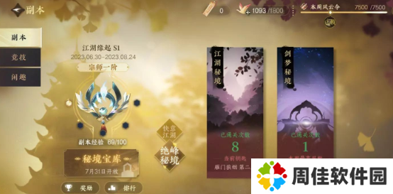 1、入口:点击菜单中的“副本”-“绝峰秘境”-“江湖秘境”。